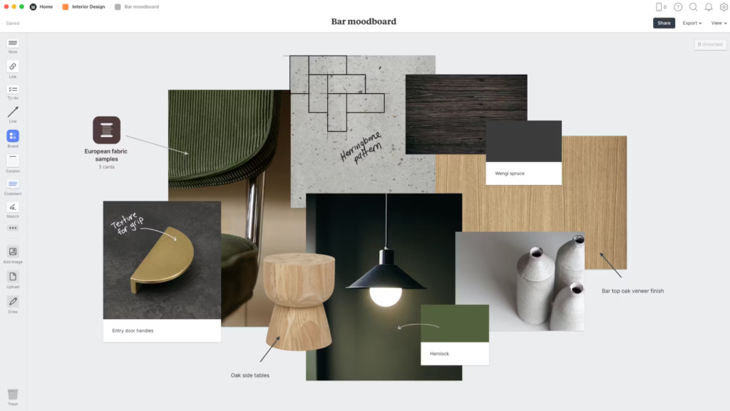 Mood boards, specification sheets, procurement assistance — For design boards and shopping lists.